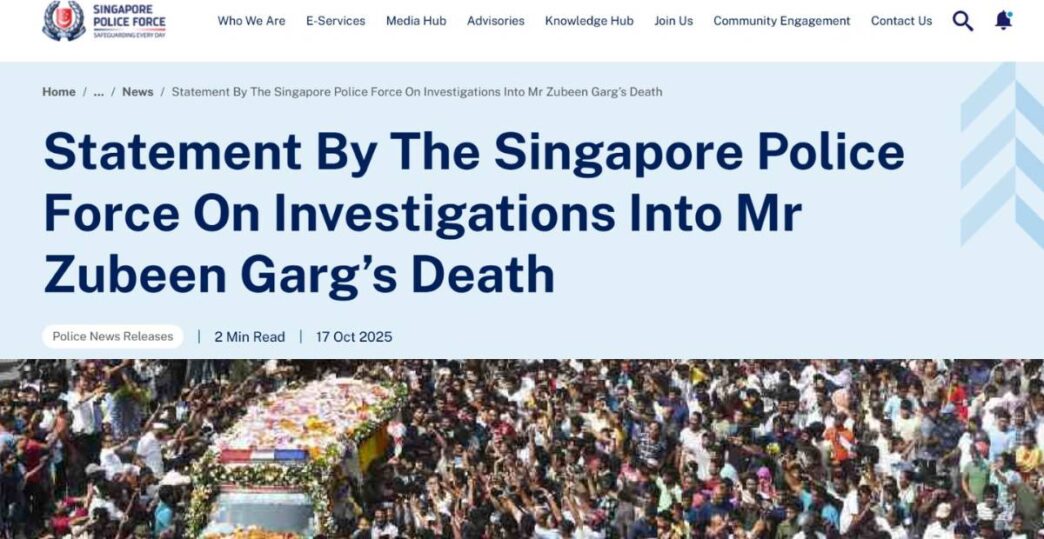 The Singapore Police Force (SPF) has issued an official statement addressing the growing rumours and false claims surrounding the death of celebrated Indian singer and composer Zubeen Garg. In its statement released today, the SPF said that there is no indication of foul play based on their preliminary investigation.